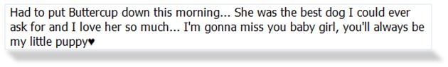 Don’t get me wrong, I also wanted to say something about Buttercup, but I struggled to find just right words. It seemed that every carefully crafted message that I wrote was quickly dismissed as I considered each one inappropriate for one group of friends or the other. I wanted to confide in my closest friends but not share with a general audience. I wanted to post something that would honor Buttercup’s memory, but I didn’t want to deal with the awkward questions or the “I feel your pain” stories that were sure to follow as people felt obligated to respond to my post. So I simply said nothing wishing that Facebook truly had some way for me to selectively share my feelings with my closest friends. But on Facebook, you are either an open book, or you are forced to take your business elsewhere? But where? They have already cornered the market on all of my friends.